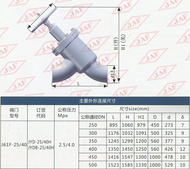 適用范圍 適用于公稱壓力為2.5/4.OM Pa、公稱通徑為DN250~DN500閥體材料為鋼質焊接的對焊直流截止閥。 閥門屬性 公稱壓力為2.5/4.0M Pa,試驗壓力為3.8/6.OMPa,適用溫度為-50°C-+200°C,適用介質為氨、氟等。 J表示截止閥 Y表示結構形式為直流式 D表示對焊連接 B代表巴士合金密封 25代表公稱壓力為2.5MPa H代表閥體材質為鋼質焊接。